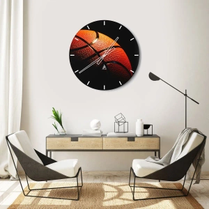 Horloge murale - Pendule murale - Gros plan d'un ballon de basket sur fond noir - 30x30cm - Belle comme une planète - Décoration murale moderne pour le salon et la chambre ARTTOR