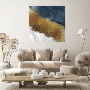 Impression sur toile - Image sur toile - Une composition abstraite dans des tons d'or, de bleu et de blanc. - 50x70cm - Les couleurs de l’été - Décoration murale moderne pour le salon et la chambre ARTTOR