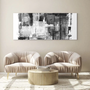 Impression sur verre - Image sur verre - Abstraction en noir et blanc avec une structure géométrique - 50x70cm - Le gris est beau - Décoration murale moderne pour le salon et la chambre ARTTOR