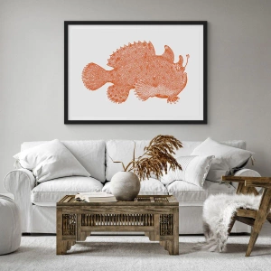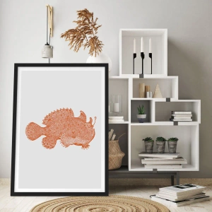 - L'affiche présente une illustration détaillée d'un poisson des profondeurs couleur rouille, aux lignes précises sur un fond clair. Son style minimaliste et son souci du détail lui confèrent une allure élégante et moderne.