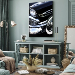 • Un tableau représentant un détail d'une voiture noire classique aux touches de chrome. L'élégance rétro et l'éclat du métal accentuent le style automobile.