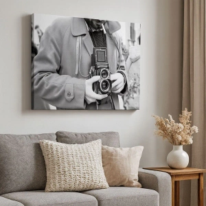 - Ce tableau représente un homme avec un appareil photo rétro en noir et blanc, véhiculant une atmosphère nostalgique et vintage. Il est idéal pour les intérieurs classiques ou minimalistes.
