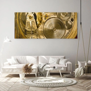 Impression sur verre - Image sur verre - Mécanisme de montre en finition dorée - 70x50cm - Marcher avec son temps - Décoration murale moderne pour le salon et la chambre ARTTOR