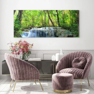 Ce tableau, réalisé par ARTTOR, mesure 70 x 50 cm au format horizontal et a été imprimé sur verre. La technologie d'impression sur verre permet d'obtenir des couleurs intenses et des détails extraordinaires, rendant chaque détail de la cascade et de la nature environnante exceptionnellement expressif. C'est un choix parfait pour les intérieurs tels qu'un salon, une chambre ou un bureau, créant une atmosphère de paix et d'harmonie.