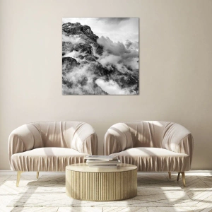 L'impression sur verre garantit une qualité élevée, la durabilité des couleurs et la précision des détails. Les nuances de noir et de blanc s'intègrent subtilement à divers styles d'intérieur, leur conférant un caractère moderne et une expression élégante. Le brouillard qui flotte dans les vallées montagneuses souligne le mystère et la tranquillité que le tableau apporte à l'espace.