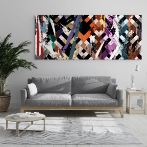 Impression sur verre - Image sur verre - Une composition abstraite aux motifs géométriques et aux couleurs intenses. - 50x70cm - Se mettre au carré - Décoration murale moderne pour le salon et la chambre ARTTOR