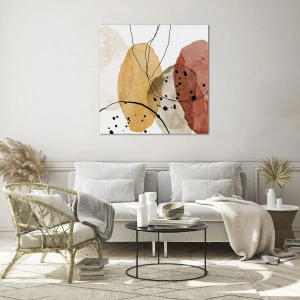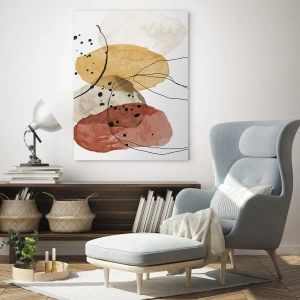 Le graphisme est dans le style de l'abstraction moderne. Ce motif s'intégrera parfaitement dans un salon, une chambre ou un bureau. Des touches artistiques et des lignes dynamiques ajoutent de la profondeur, tandis que la palette de couleurs limitée préserve la cohérence visuelle. Ce tableau allie simplicité et sophistication, ce qui en fait un choix idéal pour les amateurs de design moderne.