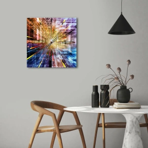 - Une vision dynamique de la ville sous une forme abstraite, avec des effets de lumière et des couleurs vibrantes. Un motif moderne qui apporte énergie et style à tout intérieur.