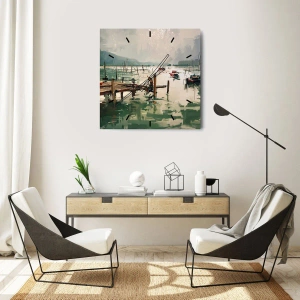 Horloge murale - Pendule murale - Un port pittoresque avec des bateaux sur une eau calme - 30x30cm - Trempé dans une lune en fusion - Décoration murale moderne pour le salon et la chambre ARTTOR