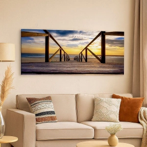Impression sur toile - Image sur toile - Jetée en bois menant à la plage au coucher du soleil - 50x70cm - Directement sur une plage calme au coucher de soleil - Décoration murale moderne pour le salon et la chambre ARTTOR