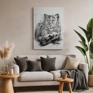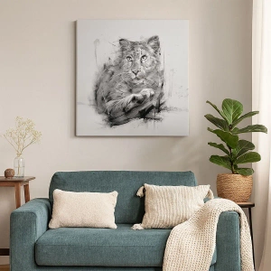 Impression sur toile - Image sur toile - Portrait noir et blanc d'un lion dans un style artistique avec des traits dynamiques. - 70x50cm - Oui, j'écoute attentivement - Décoration murale moderne pour le salon et la chambre ARTTOR
