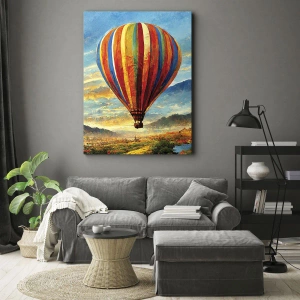 - Ce tableau représente un ballon coloré flottant au-dessus d'un paysage pittoresque. Sa composition harmonieuse apporte paix et inspiration à tout intérieur.