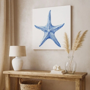 Impression sur toile - Image sur toile - Étoile de mer bleue sur fond blanc dans un style minimaliste - 50x70cm - Étoile de mer - Décoration murale moderne pour le salon et la chambre ARTTOR