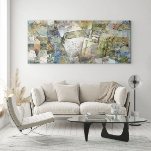 • Un arrangement coloré et abstrait de formes fragmentées, évoquant un patchwork. Cette composition dynamique et multicouche est parfaite pour un salon ou un bureau moderne.