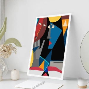 Affiche - Poster - Visages cubistes aux couleurs intenses - 100x70cm - Une conversation entre cubistes - Décoration murale moderne pour le salon et la chambre ARTTOR