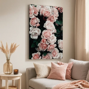 Impression sur toile - Image sur toile - Roses roses sur fond sombre dans une composition subtile - 160x50cm - Ensemble de rose - Décoration murale moderne pour le salon et la chambre ARTTOR