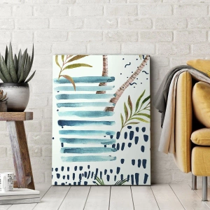 - Ce tableau présente un motif abstrait avec des palmiers et des touches nautiques. Parfait pour les intérieurs à l'esprit vacances, il apporte harmonie et modernité. Dimensions : 70 x 50 cm.