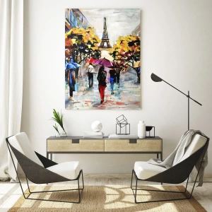 Impression sur verre - Image sur verre - La Tour Eiffel en arrière-plan des gens marchant sous des parapluies colorés - 50x70cm - Particulièrement beau en automne - Décoration murale moderne pour le salon et la chambre ARTTOR