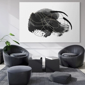 - Un tableau moderne sur verre avec une composition abstraite de taches noires et de touches dorées. Son style minimaliste, son élégance et son contraste en font un choix idéal pour les intérieurs modernes.