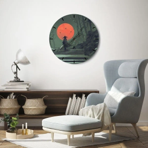 Horloge murale - Pendule murale - Un guerrier solitaire avec une épée sur fond de lune rouge dans une forêt sombre. - 30x30cm - Guerrier de la lune rouge - Décoration murale moderne pour le salon et la chambre ARTTOR