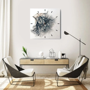 "Silhouette d'une femme et d'un arbre" est une horloge murale unique qui représente une composition artistique de la silhouette d'une femme, où la couronne d'arbre s'entrelace avec ses cheveux, créant une image incroyablement symbolique et harmonieuse. Ce motif allie la beauté de la nature à la créativité humaine, introduisant un symbolisme profond dans tout intérieur.