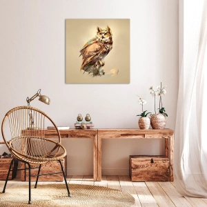 - Cette impression sur toile unique représente le portrait artistique d'un hibou sur fond clair. Parfaite pour les intérieurs, elle apporte élégance, tranquillité et symbolisme de sagesse.