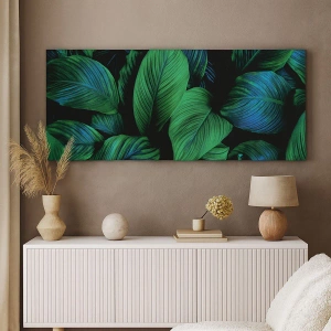 Impression sur toile - Image sur toile - Feuilles vertes dans un style minimaliste - 50x70cm - Dans la foule verte - Décoration murale moderne pour le salon et la chambre ARTTOR