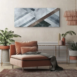 Impression sur toile - Image sur toile - Formes géométriques dans des tons froids de bleu et de marron - 50x70cm - Élégance sophistiquée de la géométrie - Décoration murale moderne pour le salon et la chambre ARTTOR