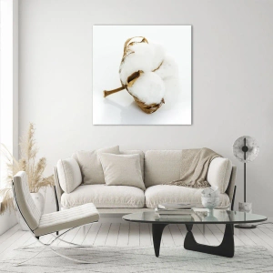 Impression sur verre - Image sur verre - Une seule fleur de coton duveteuse sur fond blanc - 50x70cm - Doux par nature - Décoration murale moderne pour le salon et la chambre ARTTOR