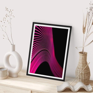 Affiche dans un cadre noir - Poster - Lignes futuristes dans des tons de rose sur fond noir - 70x50cm - Avenue de lumière - Décoration murale moderne pour le salon et la chambre ARTTOR