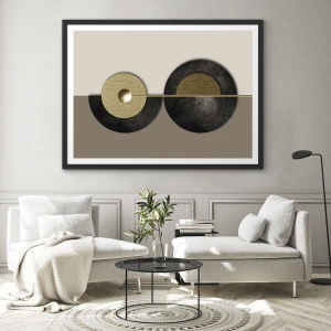 Affiche dans un cadre noir - Poster - Cercles abstraits dans des tons d'or et de marron - 70x50cm - Variations autour du cercle - Décoration murale moderne pour le salon et la chambre ARTTOR