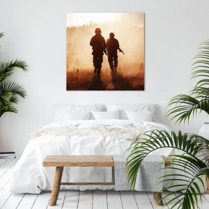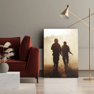 - Une toile représentant des soldats marchant dans le brouillard matinal sur fond de nature. Une décoration parfaite pour insuffler une atmosphère de paix et de détermination à votre intérieur.