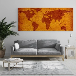 Impression sur verre - Image sur verre - Carte du monde vintage sur fond marron et or. - 80x120cm - Invitation au voyage - Décoration murale moderne pour le salon et la chambre ARTTOR