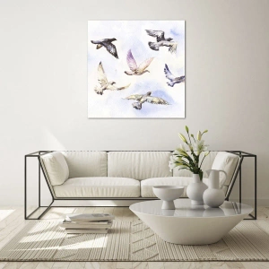 Impression sur verre - Image sur verre - Oiseaux en vol contre un ciel clair - 50x70cm - Liberté en gris et bleu - Décoration murale moderne pour le salon et la chambre ARTTOR