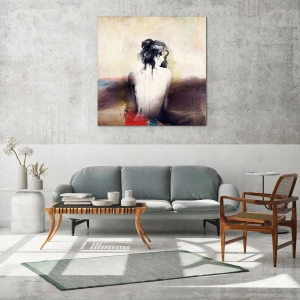 La peinture sur verre est faite sur un verre de 4 mm d'épaisseur. Les bords du verre ont une arête trapézoïdale mate. La tableau est sûr à l'utilisation et prêt à être accroché - il a des crochets en métal attachés à l'arrière du cadre et des entretoises en mousse permettant la régulation uniforme de la distance du tableau au mur.