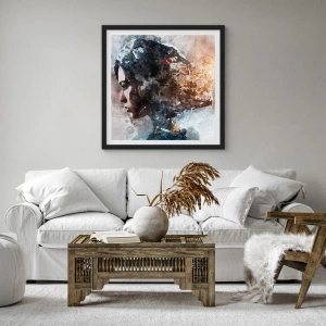 Affiche dans un cadre noir - Poster - L'histoire d'une fille avec une ville en arrière-plan - 30x30 cm