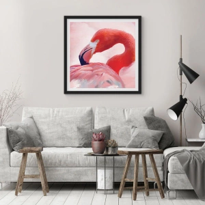 - Cette affiche représente un flamant rose sur un fond clair, apportant une touche exotique et élégante à tout intérieur. Encadrée en noir, elle est prête à être accrochée. Dimensions : 50 x 70 cm.