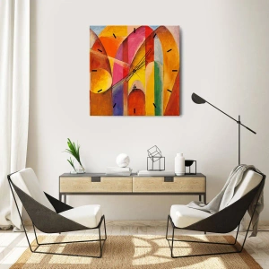 Horloge murale - Pendule murale - Une composition abstraite pleine de formes géométriques colorées. - 30x30cm - Cathédrale du soleil - Décoration murale moderne pour le salon et la chambre ARTTOR