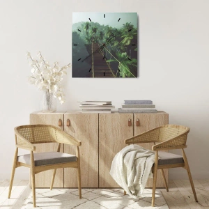 Horloge murale - Pendule murale - Un pont suspendu dans une forêt tropicale entourée de brouillard. - 30x30cm - Au fil de la verdure - Décoration murale moderne pour le salon et la chambre ARTTOR