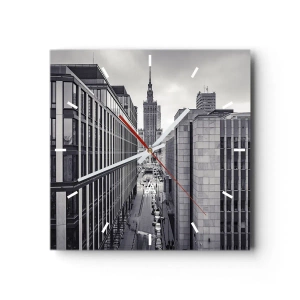 Horloge murale - Pendule murale - Panorama de Varsovie avec vue sur le Palais de la Culture et les bâtiments environnants - 30x30cm - Vallée de Varsovie - Décoration murale moderne pour le salon et la chambre ARTTOR