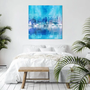 Impression sur toile - Image sur toile - Panorama urbain abstrait dans des tons bleus - 80x120cm - Noyé dans le bleu - Décoration murale moderne pour le salon et la chambre ARTTOR
