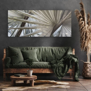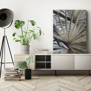 Impression sur toile - Image sur toile - Gros plan de feuilles de palmier dans des tons naturels de vert - 50x70cm - Evantail sous les tropiques - Décoration murale moderne pour le salon et la chambre ARTTOR