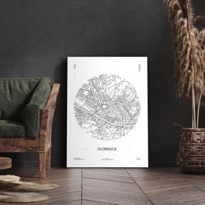 La composition du tableau présente un tracé détaillé des rues et des quartiers de la ville, ce qui en fait non seulement un élément décoratif, mais aussi une source d'inspiration pour voyager et découvrir la riche histoire de Florence. Les contrastes expressifs entre le fond blanc et les lignes noires ajoutent harmonie et paix à tout intérieur.