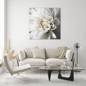 Impression sur verre - Image sur verre - Gros plan d'un dahlia blanc sur fond noir et gris - 50x70cm - Le matin de la jeune mariéé - Décoration murale moderne pour le salon et la chambre ARTTOR