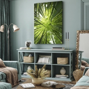 Le design de ce tableau est parfait pour les intérieurs d'inspiration naturelle, asiatique ou minimaliste. Grâce à la prédominance de la verdure, ce tableau apporte fraîcheur et harmonie, et la disposition des troncs de bambou orientant le regard vers le ciel souligne le dynamisme et la profondeur de la composition.