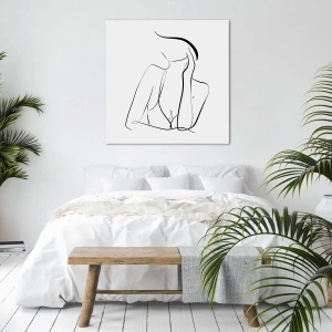 - L'impression sur toile « Sur la vague des rêves » représente une silhouette féminine délicatement esquissée dans un style minimaliste. Elle est idéale pour décorer un intérieur empreint d'harmonie et de sophistication.