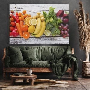 Impression sur toile - Image sur toile - Fruits et légumes colorés sur fond de bois - 70x50cm - Ce n'est pas suffisant? - Décoration murale moderne pour le salon et la chambre ARTTOR