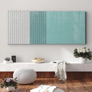 - Ce tableau présente une composition géométrique aux accents et lignes turquoise, créant un design moderne et élégant. Idéal pour les amateurs de décoration minimaliste.
