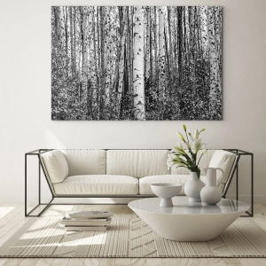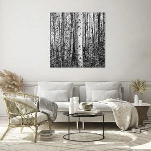 La prise de vue en noir et blanc permet de se concentrer sur les détails : la texture de l'écorce, le fourré de branches et les subtiles variations de lumière. « Colonnade de bouleaux » s'intégrera parfaitement dans les intérieurs modernes et minimalistes, où nature et simplicité forment un ensemble cohérent. C'est une proposition pour le salon, la chambre et l'espace de travail.