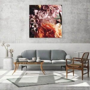 La peinture sur verre est faite sur un verre de 4 mm d'épaisseur. Les bords du verre ont une arête trapézoïdale mate. La tableau est sûr à l'utilisation et prêt à être accroché - il a des crochets en métal attachés à l'arrière du cadre et des entretoises en mousse permettant la régulation uniforme de la distance du tableau au mur.